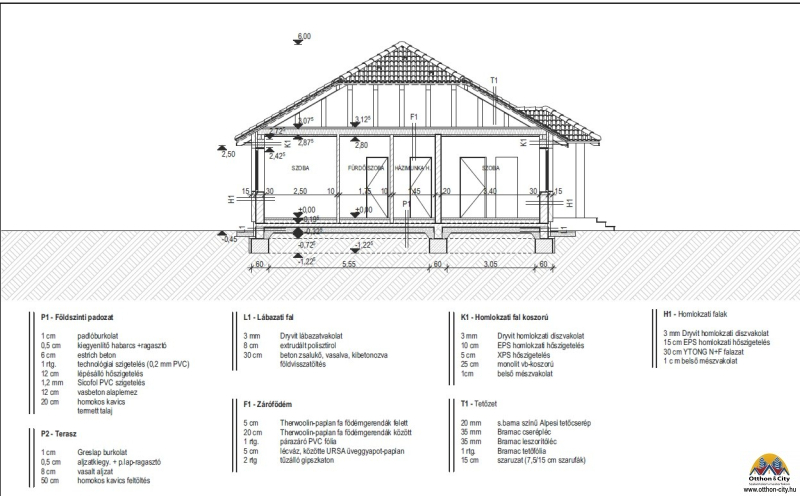 • Körbejárható ház (40 cm járda, vízelvezetéssel)
